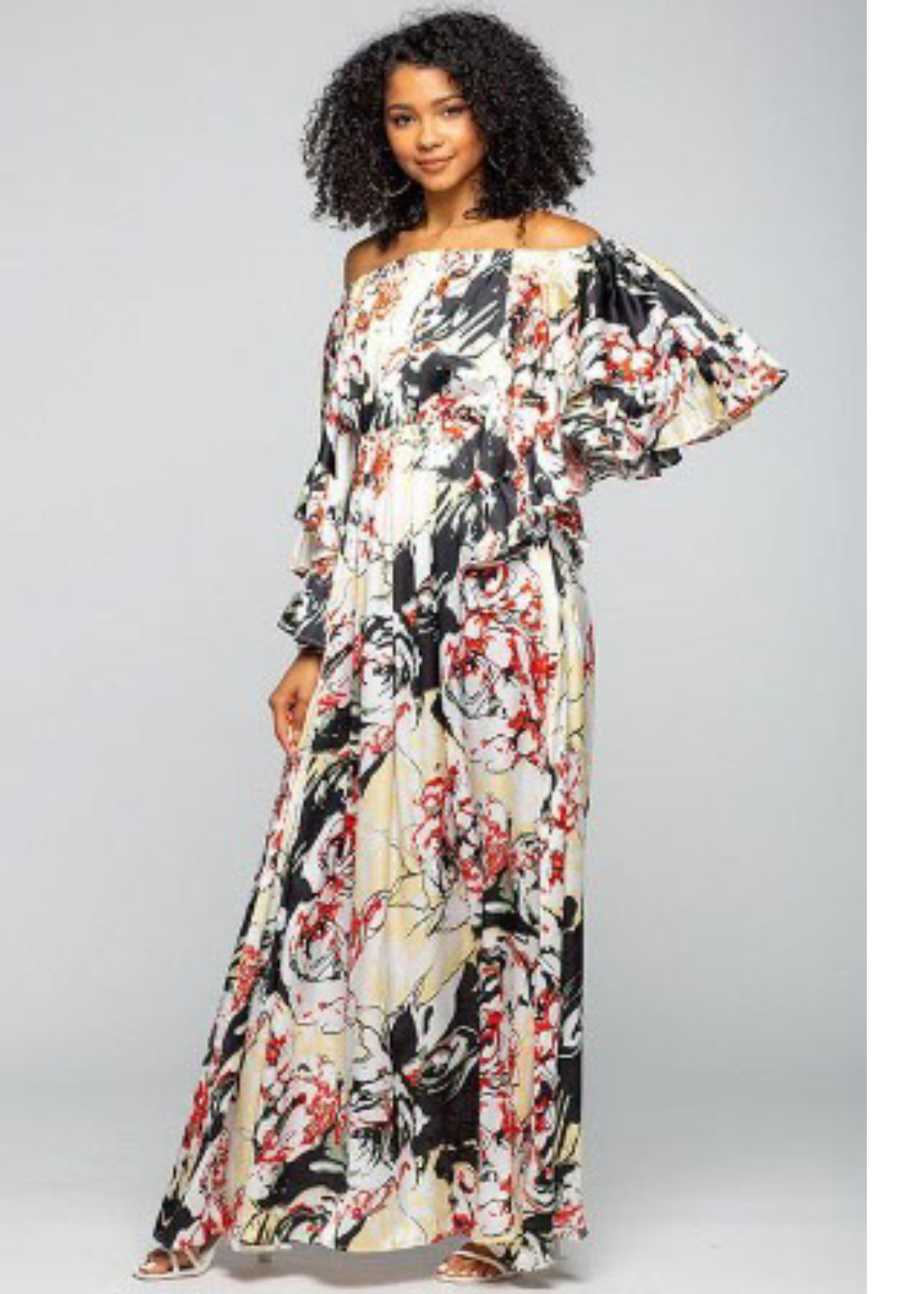 Just as flowers add beauty to an environment, you'll also bring beauty and so much more to your surroundings in this floral off the shoulder maxi. The ruffle details on the sleeves are as pretty as the petals that pattern the dress. An elasticized waist is also featured on this dress. So do as the flowers, queen - bloom. Bloom where you are planted. Bloom with beauty. Bloom with purpose.