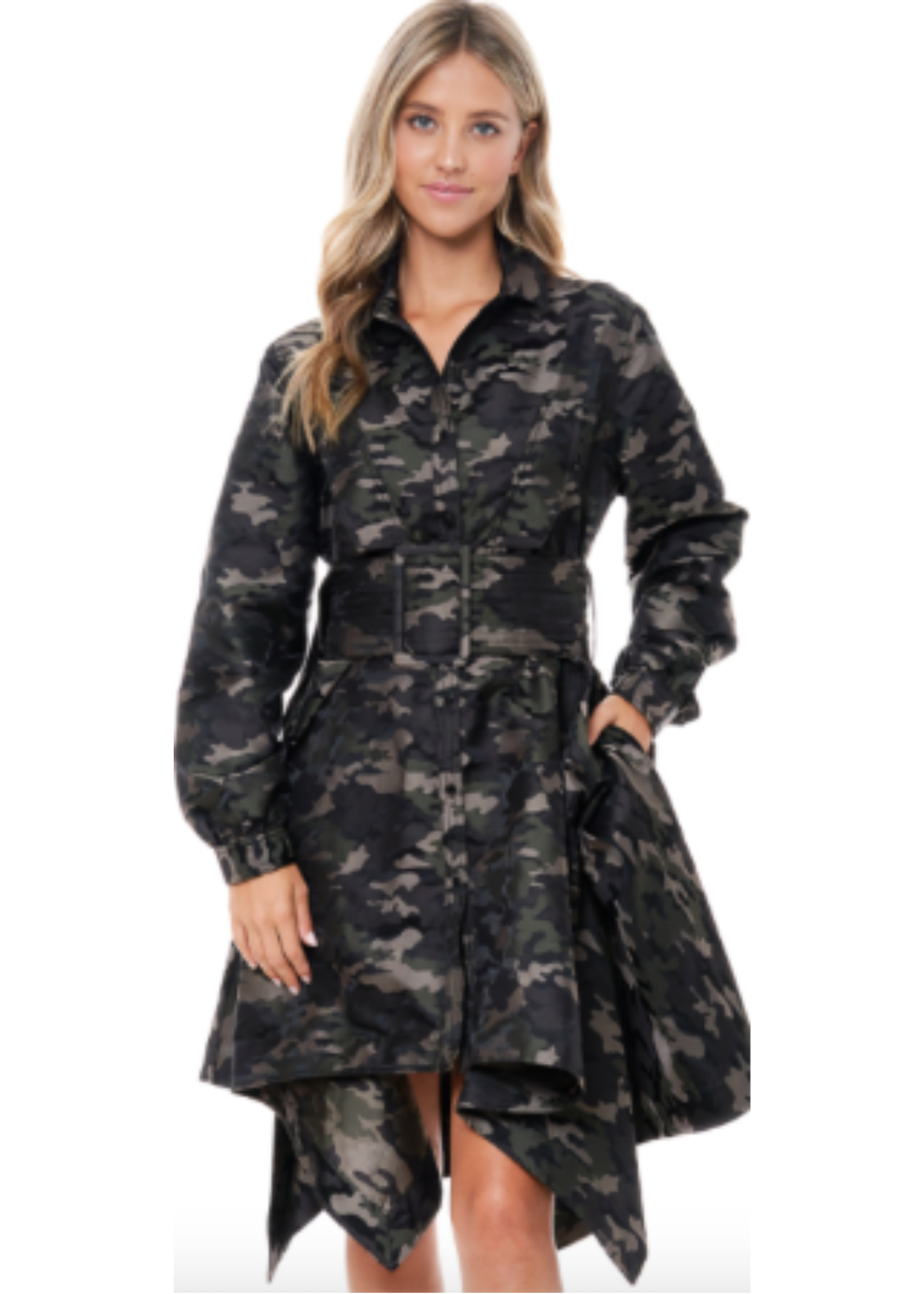 Prepare to overcome challenges and achieve your dreams with Commanding The Day. Its bold camouflage print symbolizes the acceptance of challenges and its versatility allows it to be worn as a dress, top, coat, or any way you choose. This unique piece features a crew neck, front button closure, 2 flap chest pockets, and a wide, removable buckle belt. The hi-lo hem adds a touch of elegance while the 100% polyester fabric ensures comfort and durability. Today, conquer anything with Commanding The Day.
